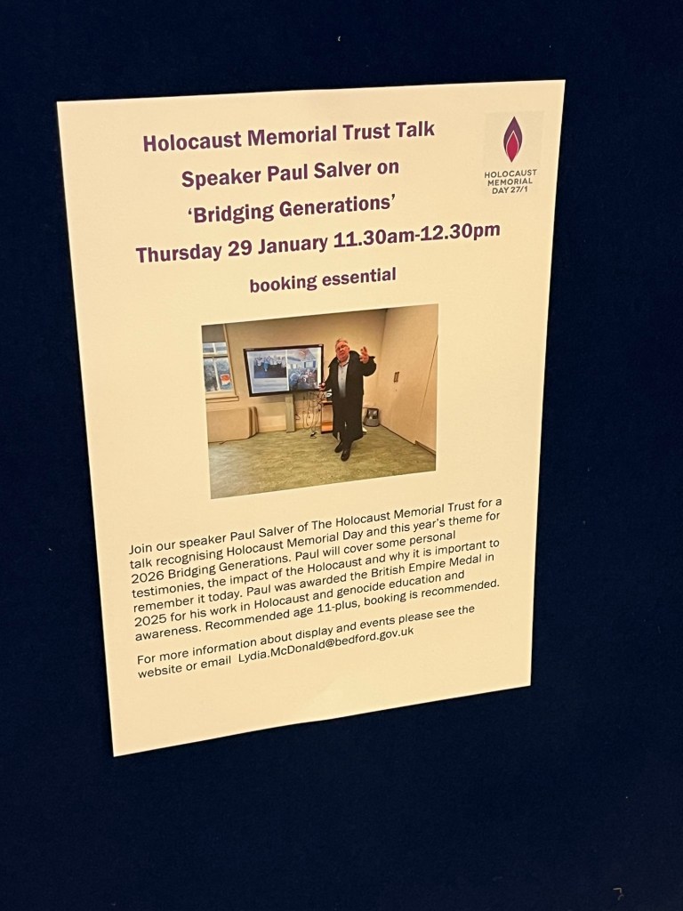 Where we attended a talk by a retired teacher, Paul Salver, who tirelessly goes into schools in Milton Keynes and Bedfird and surrounding areas to teach about the Holocaust as well as genocide awareness.