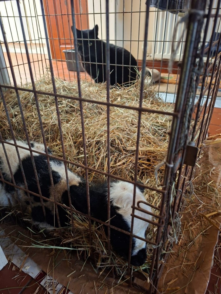 I had bottle fed Virginia before I left and checked Perky who looked as if she was ready to lamb. When I returned home she had given birth to Twin girls