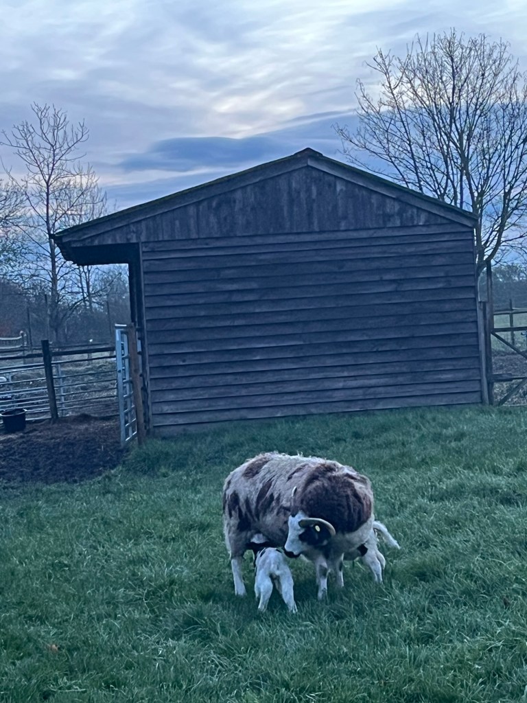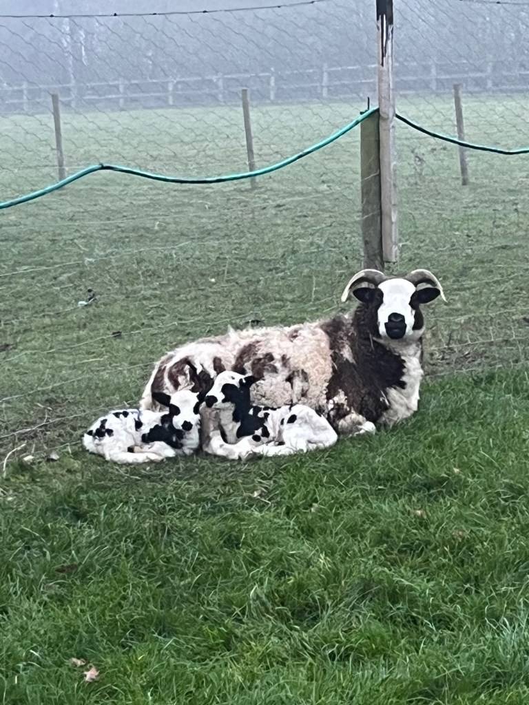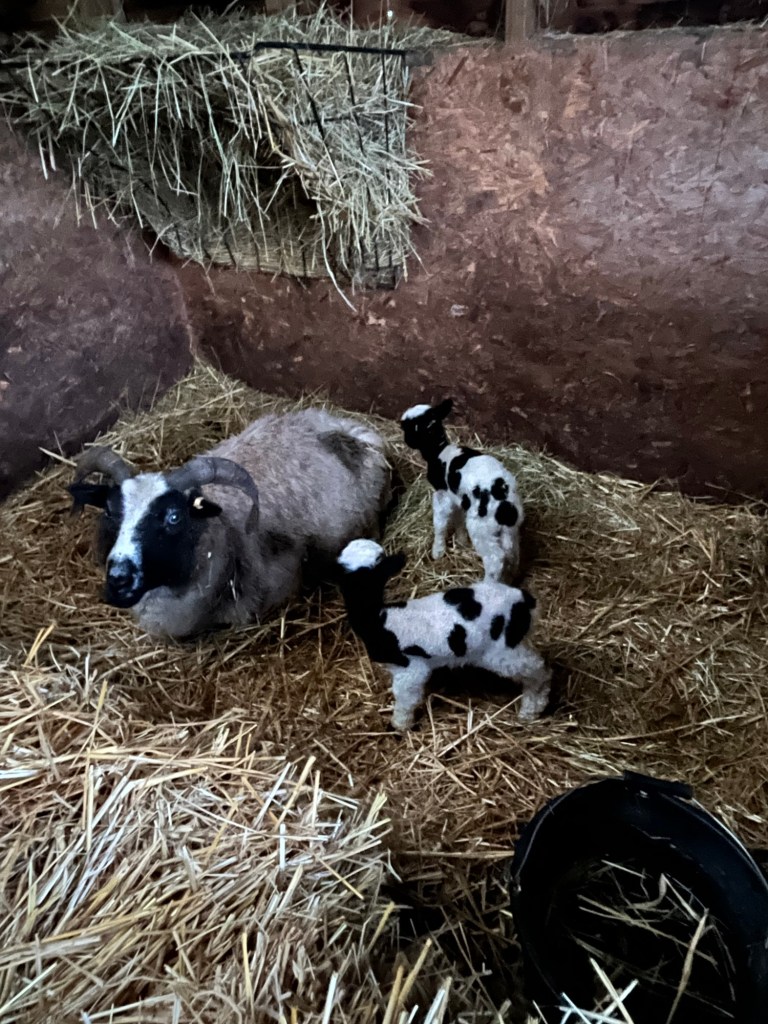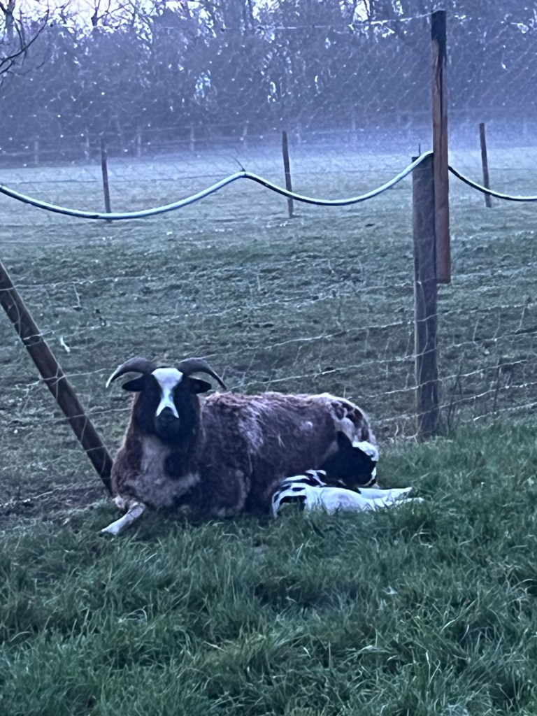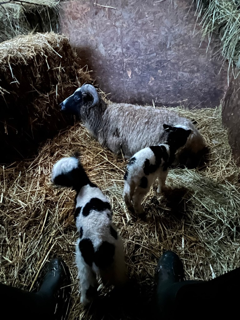She is now in a lamb pen in the barn and mother, son and daughter are doing well. Better photos tomorrow but for now…