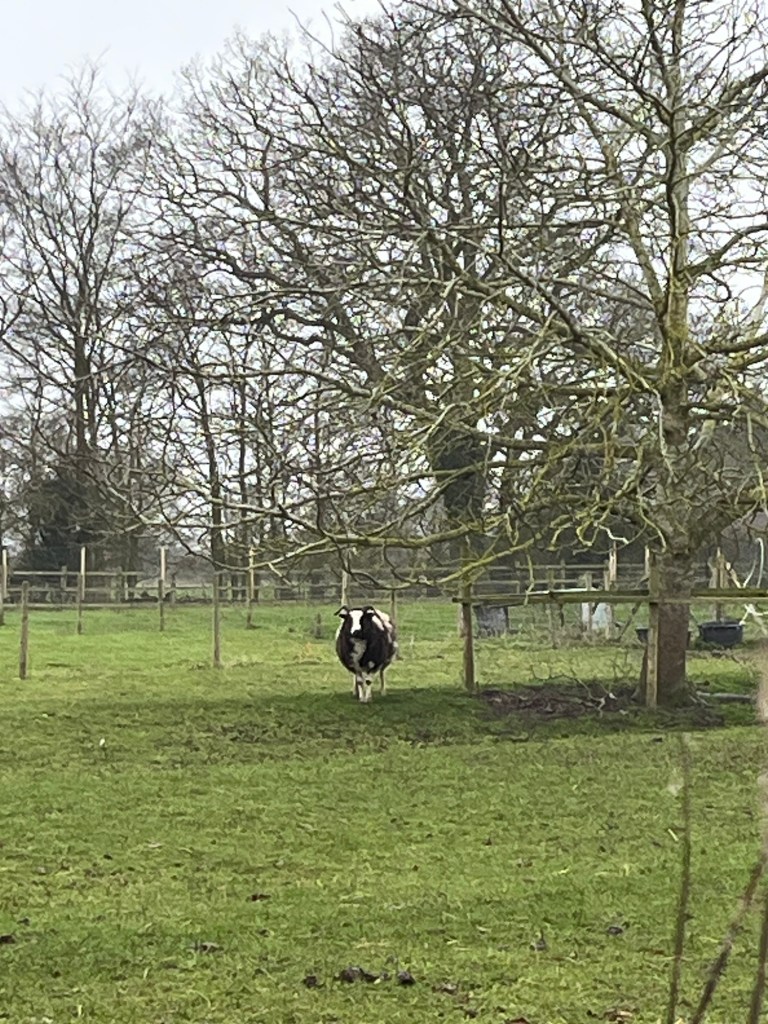 Found this morning – a very large lamb but not alive. She is calling for her lamb. She is more accepting tonight and came into the barn to feed. Click below