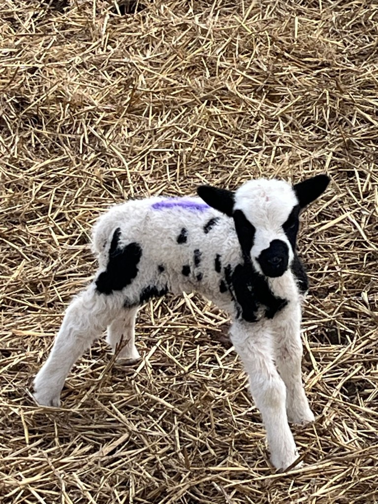 This morning I came out to the sheep barn and saw an afterbirth on the straw. I looked in the field and there was Bridge with a lamb.