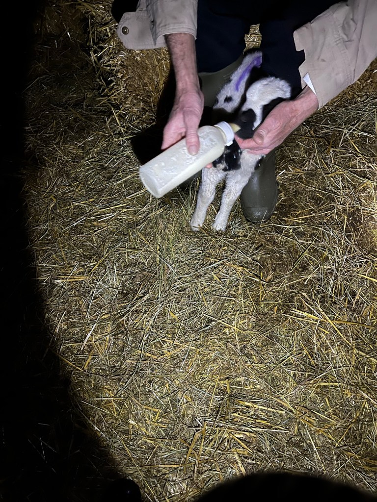 We are keeping Bridge indoors in the barn with her lamb as she needs to recover and revive and we are topping the lamb up from a bottle
