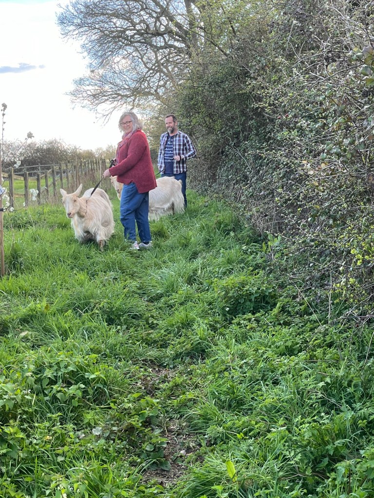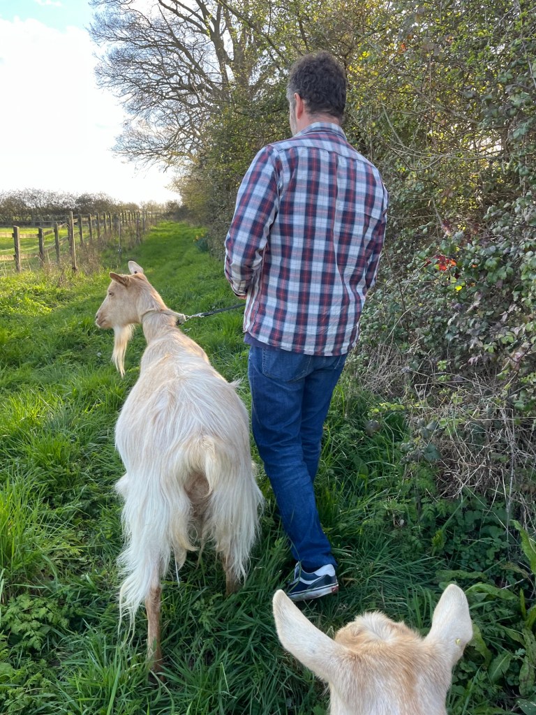 Before eating they took the goats ( with Jeremy supervising) for a walk on their leads.