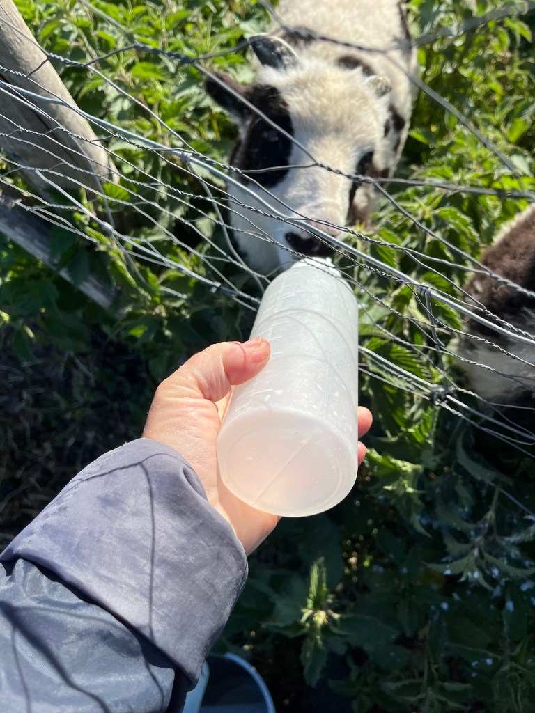 We let the flock into a fresh quarter of the field with lush green grass. The lambs got very excited