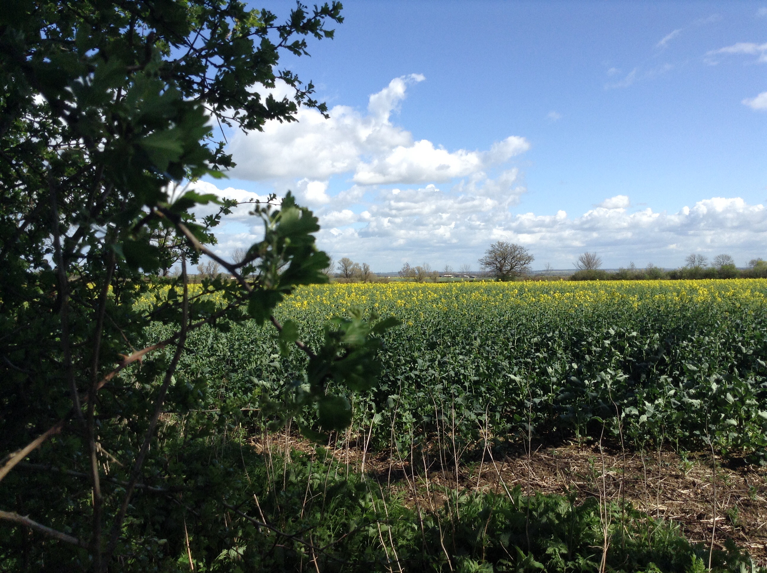 All around there are huge fields shining with the sunshine yellow flowers of the oil seed rape crops. A faint, but not unpleasant, cabbage smell is in the air as the rape is a member of the brassica family. My neighbour dislikes this but, for me, it is just part and parcel of the sights and smells of spring here in beautiful Bedfordshire