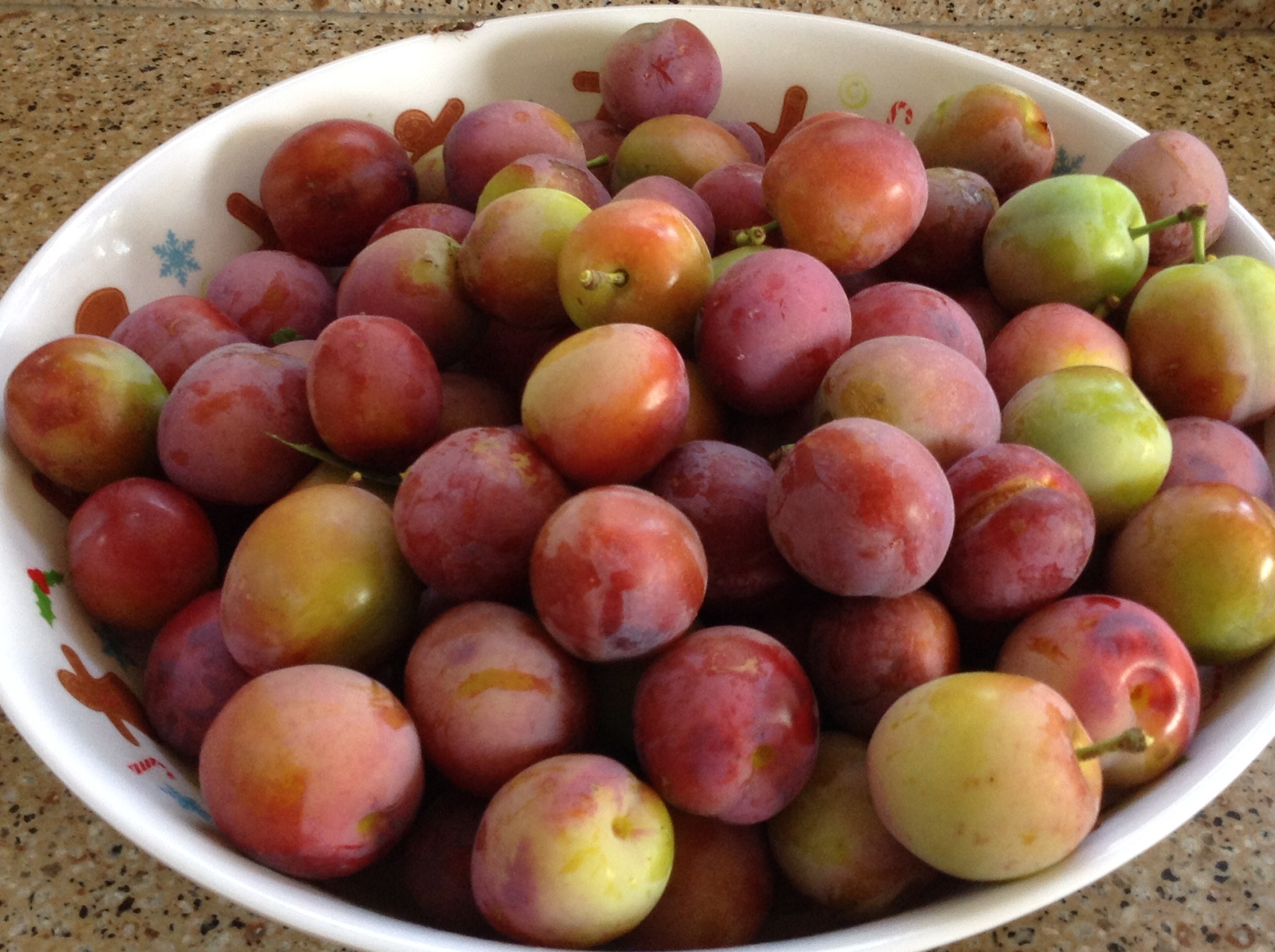 Last year, when we arrived at The Gables in mid August, we didn’t notice the beautiful cherry plum tree at the back of the house. This year it is laden with fruit, ripe for the picking and ready for jam making….tonight.