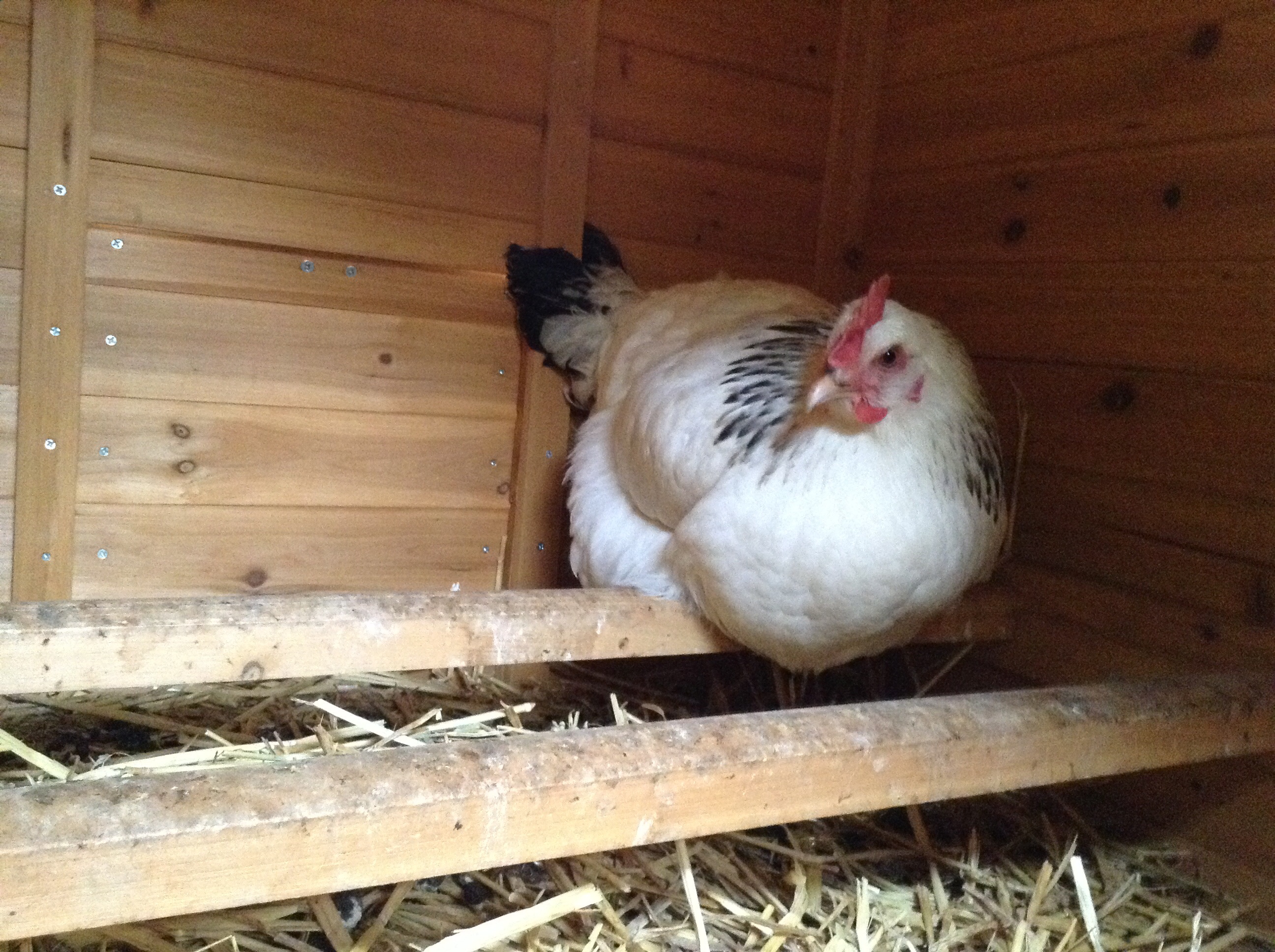 We were concerned about Major, the light Sussex with the large red comb. She seemed listless yesterday and spent most of the time sitting. She began today in the same way so we googled ” listless hen” and consulted our very old copy of “backyard poultry keeping”. Both indicated that Major was “egg bound” and, in fact, the very large eggs that we have been used to collecting every couple of days seem to have been absent for the last week.