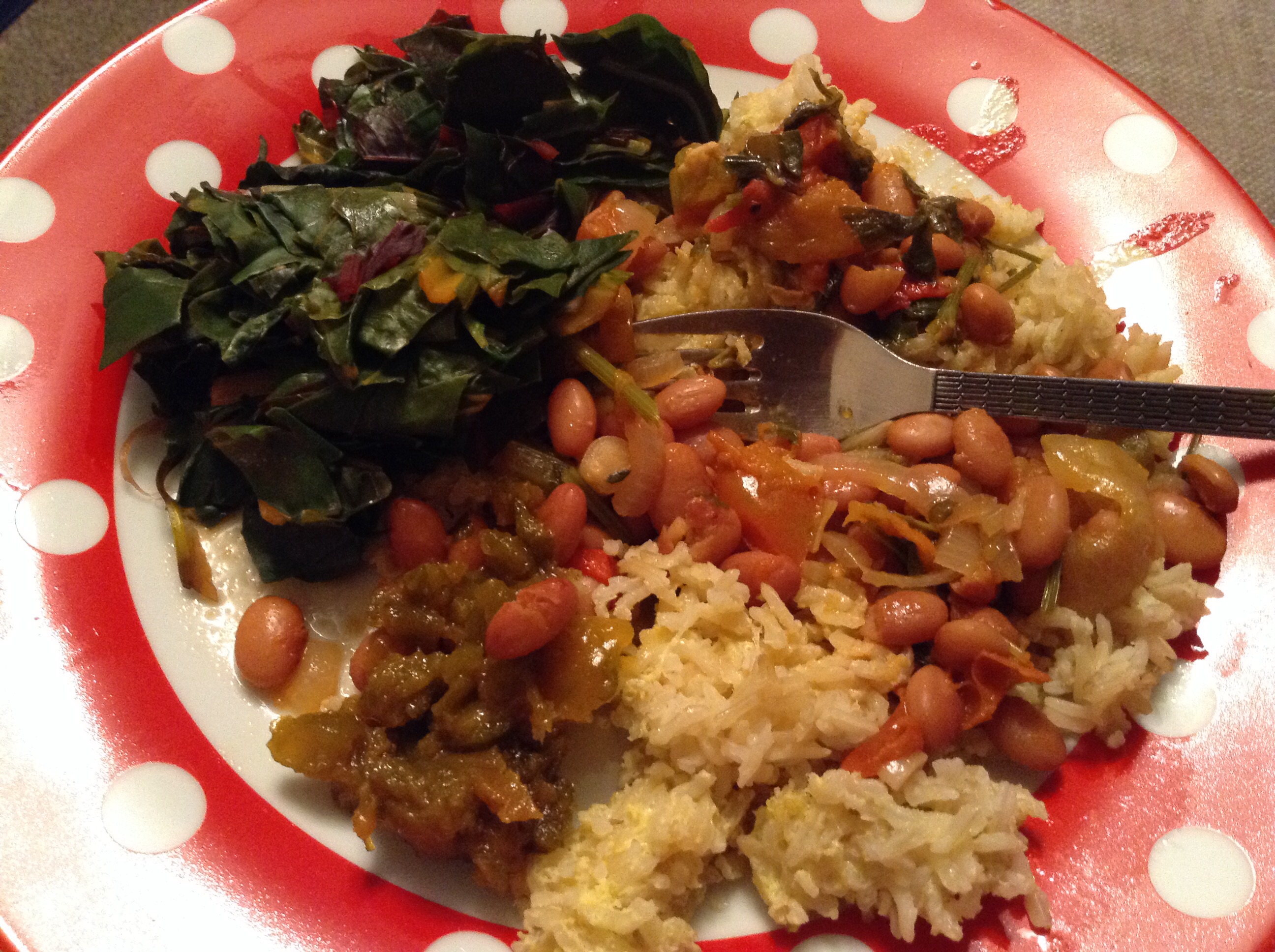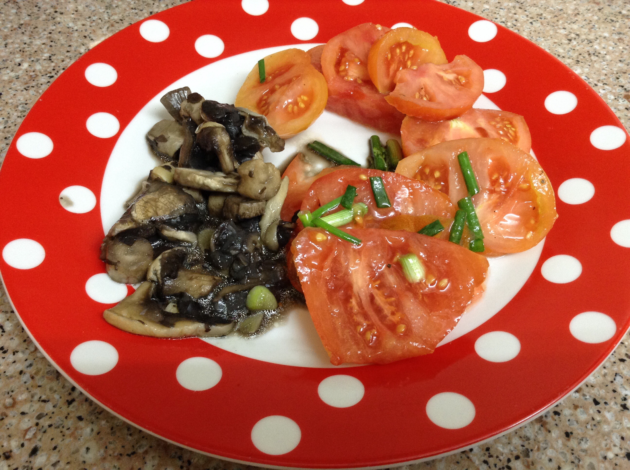 October 19, 2014 by gfreedman2013 Tasty supper Mushrooms in butter and garlic with tomato and spring onion vinaigrette followed by Jeremy’s tasty casserole of pinto beans with roasted tomato and herb sauce, egg fried rice and Swiss chard and then raspberries and cream. Share this: Share on X (Opens in new window) X Share on Facebook (Opens in new window) Facebook Like Loading... Related