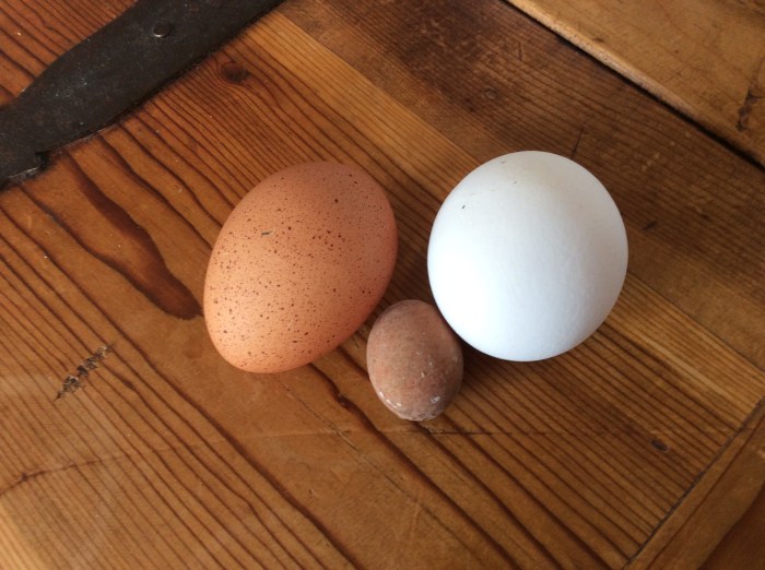 April 23, 2017 by gfreedman2013 One of the hens is a “learner layer”…..see the size of her first egg Share this: Share on X (Opens in new window) X Share on Facebook (Opens in new window) Facebook Like Loading... Related