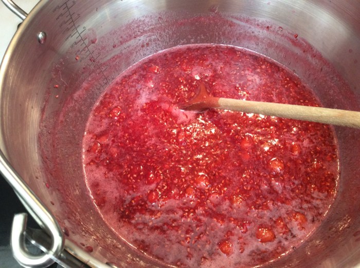 June 21, 2017 by gfreedman2013 Too hot outside picking raspberries and not quite so hot in the kitchen making raspberry jam. Uncomfortable either way but something to enjoy later in the year. Share this: Share on X (Opens in new window) X Share on Facebook (Opens in new window) Facebook Like Loading... Related