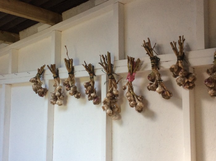 July 2, 2017 by gfreedman2013 Garlic plaited today and they are now hanging in the “wool barn” with the Jacob fleeces Walking back across the paddock the first ripe cherry plums were dangling, temptingly, from the tree. So I picked them and popped them in my mouth! Share this: Share on X (Opens in new window) X Share on Facebook (Opens in new window) Facebook Like Loading... Related