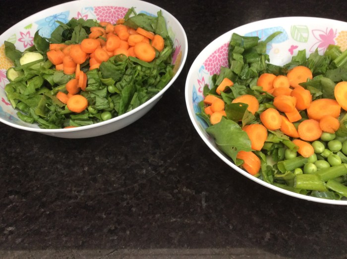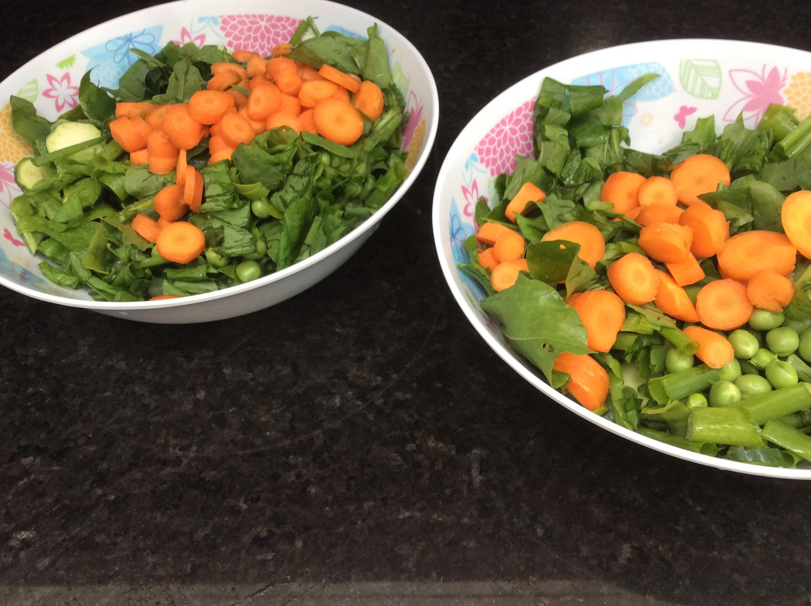 The weather threatens rain but never mind. The salads are nearly finished with some carrots, sorrell, Welsh onions, peas and courgettes ready to add to the lettuce.