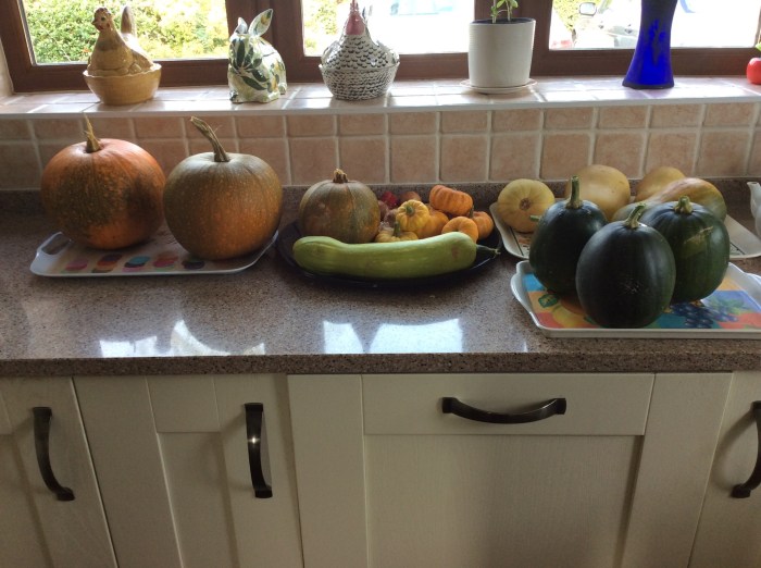 October 11, 2017 by gfreedman2013 Variety is the spice of life…..or squashes I fear that we may be eating a variety of pumpkins and squashes for the next month or more. We also have a box of jack be little pumpkins wrapped and stored in the barn. We might still be eating them at Christmas! Share this: Share on X (Opens in new window) X Share on Facebook (Opens in new window) Facebook Like Loading... Related