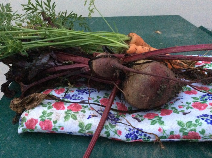 November 2, 2017 by gfreedman2013 A treat for us and a treat for them Just before dark I dug up some carrots and some beetroots. The cows love the leafy tops and almost grabbed them out of my hand. Share this: Share on X (Opens in new window) X Share on Facebook (Opens in new window) Facebook Like Loading... Related