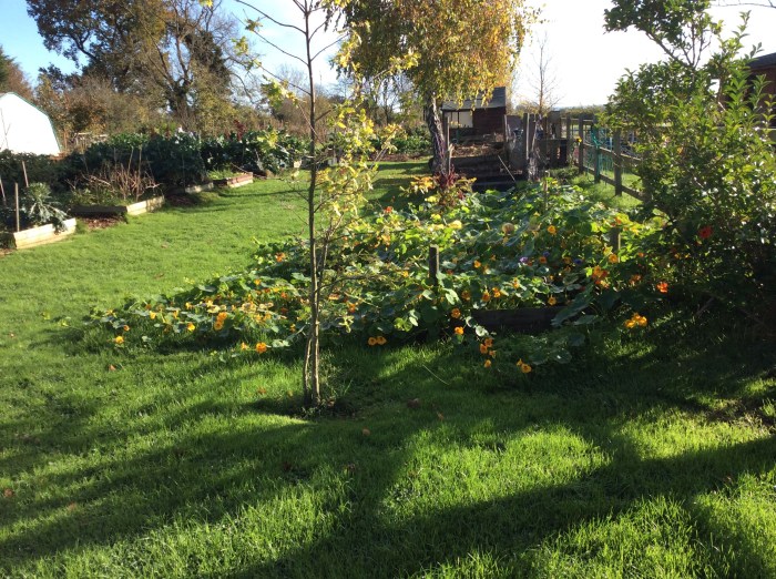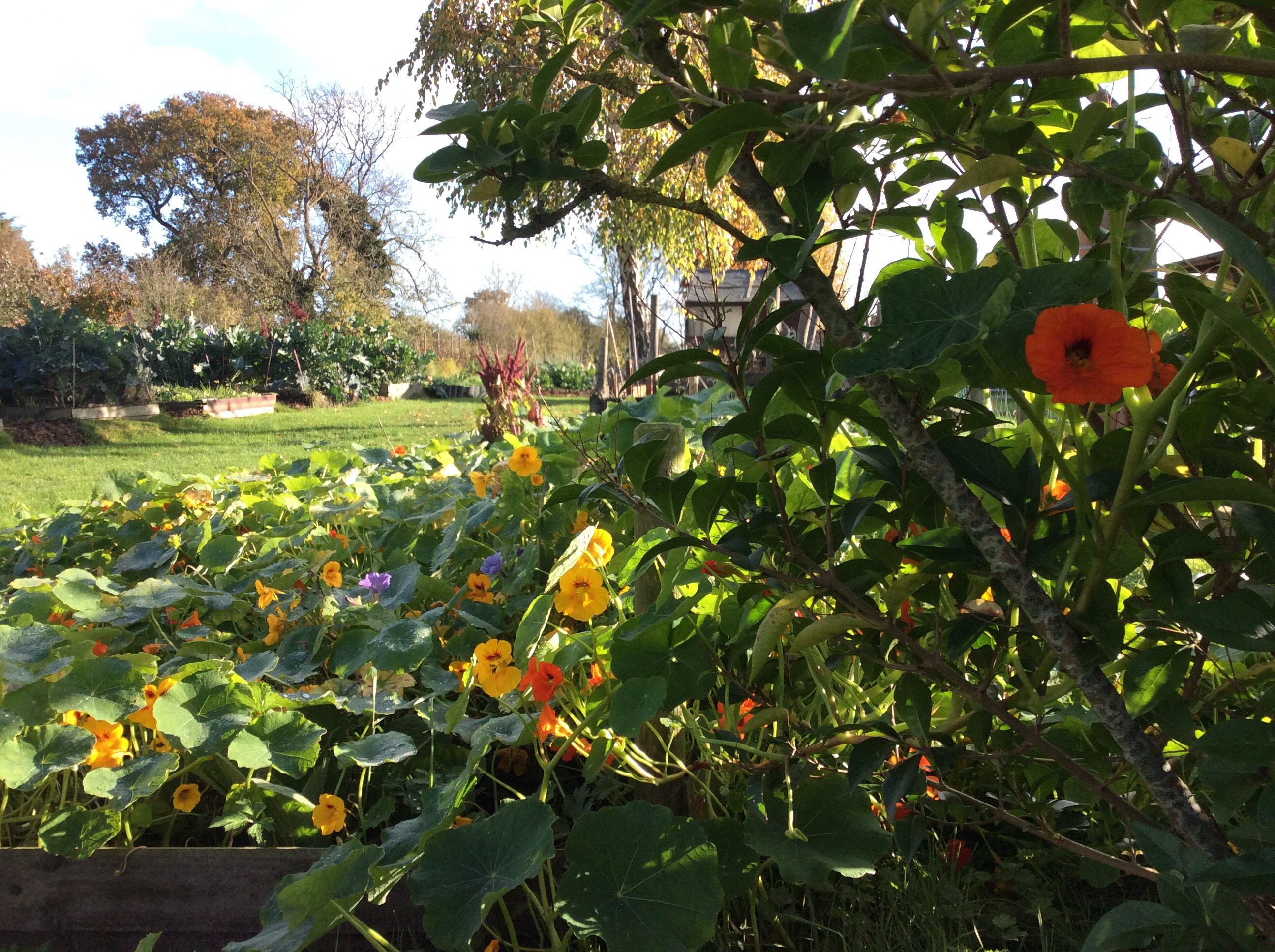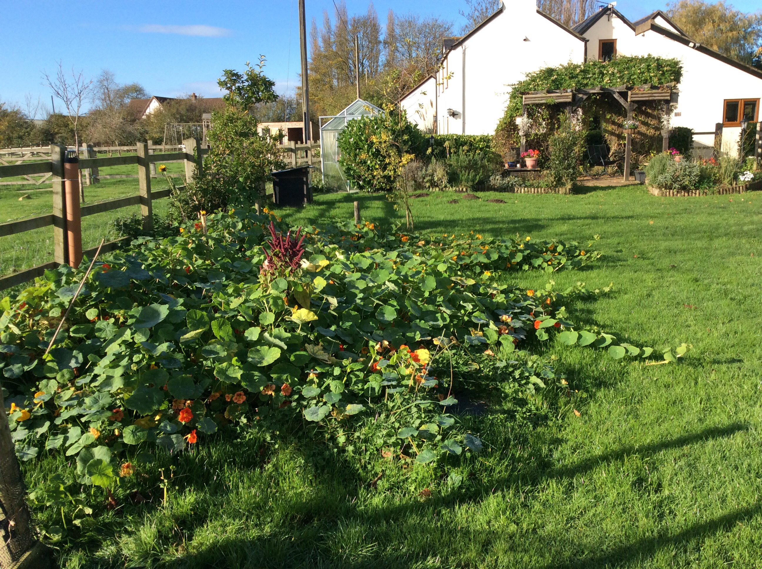 The nasturtiums are taking over some pockets of the garden. I have no complaints. We have a veritable carpet beside the first field gate and some are even climbing up into an adjacent bush. I will miss their vibrant orange and yellow colours when the inevitable frosts arrive.
