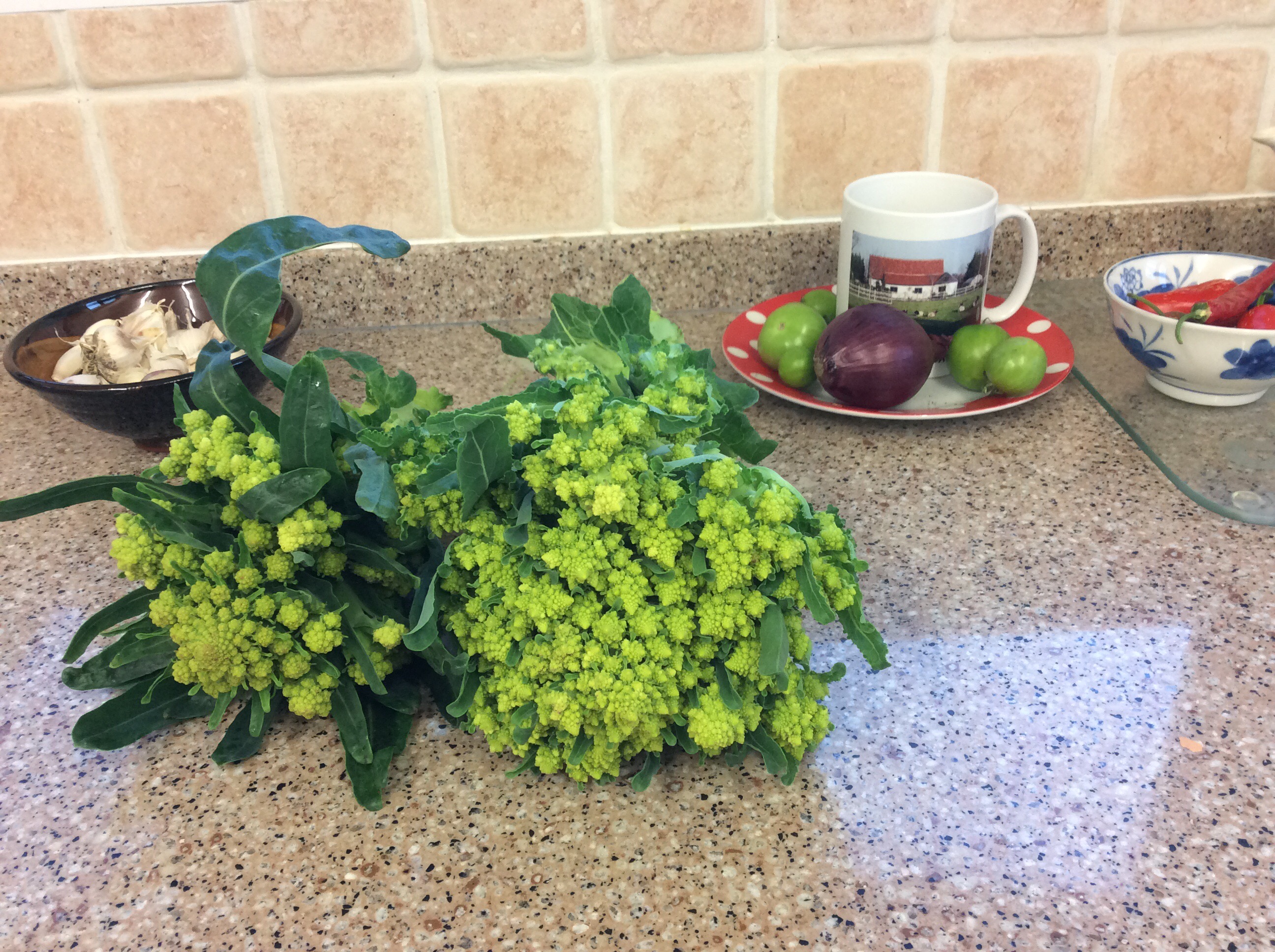 Jeremy has grown a different variety of broccoli for autumn harvesting, Romanesco. It is a glorious shade of green with a pointy floret. I will cook some tonight and toss the florets in olive oil and lemon juice. We will eat it with risotto. An all Italian menu. Burn appetito!