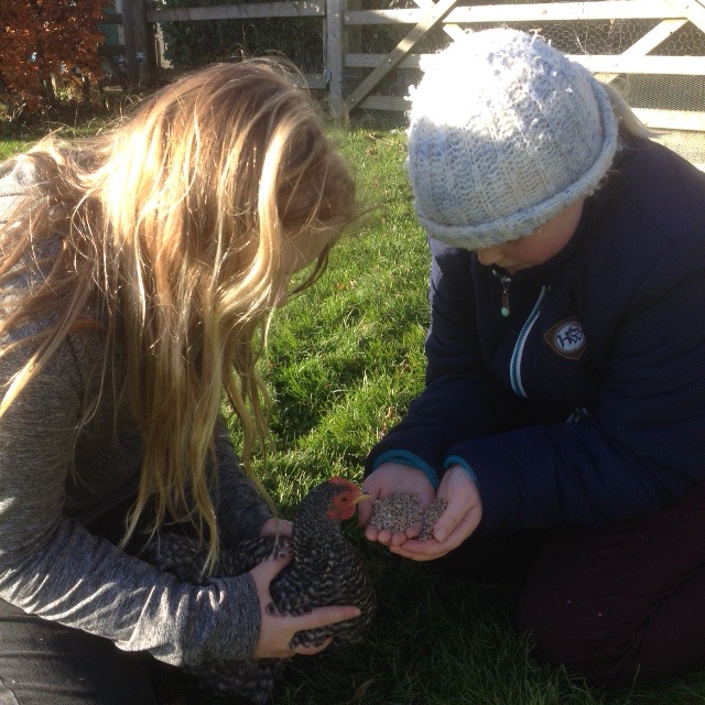 Earlier this morning two ten year old girls came a calling. They had been out for a walk with their granny and had collected a lot of recyclable rubbish on their way. They popped it in my bin and then went to meet the Bantie and her chicks and gave the Mum some corn. She was reluctant to let them feed her although she is always happy to come to my hand. Another sign that chickens are smarter than we think and know their human partners.