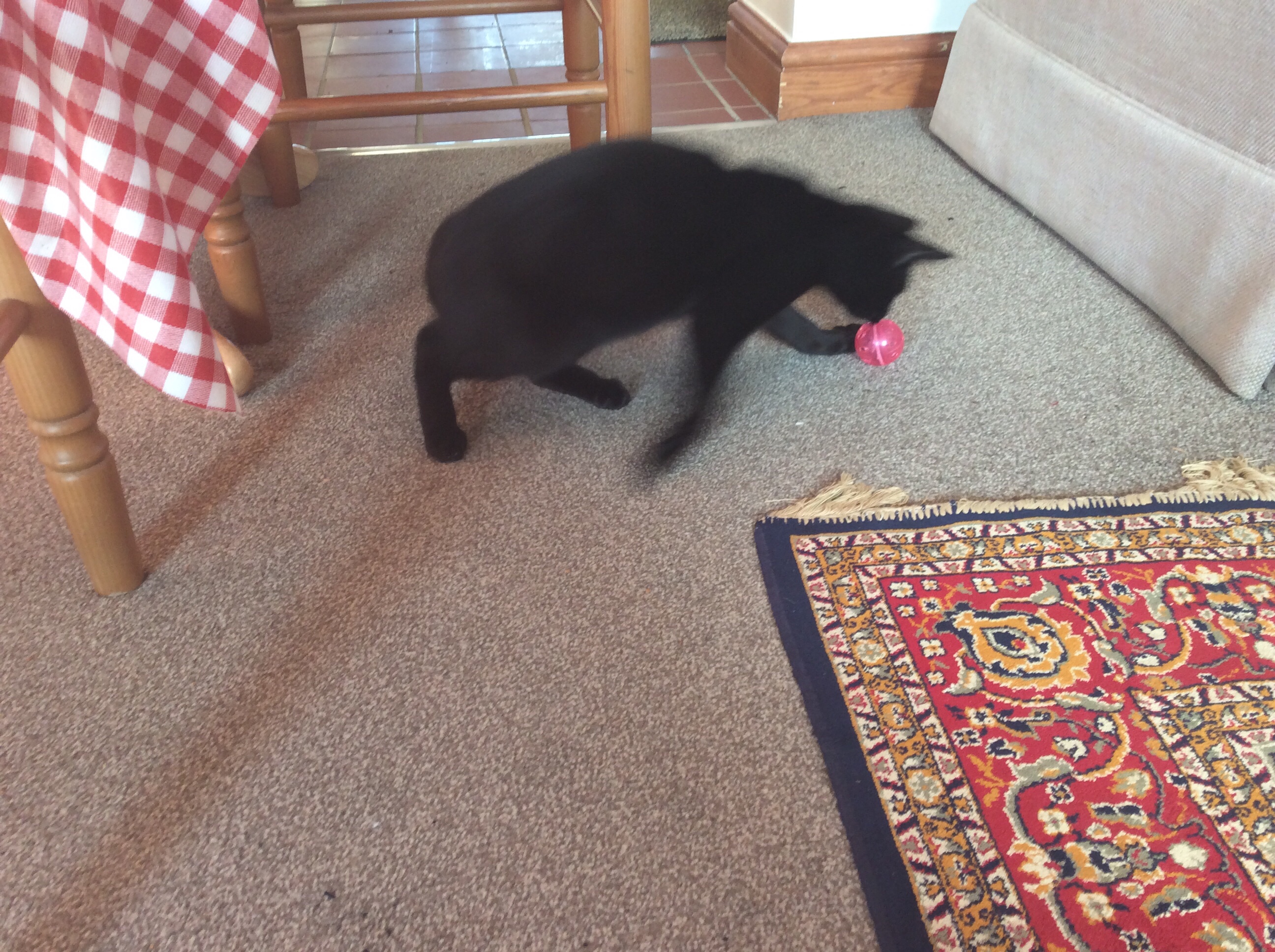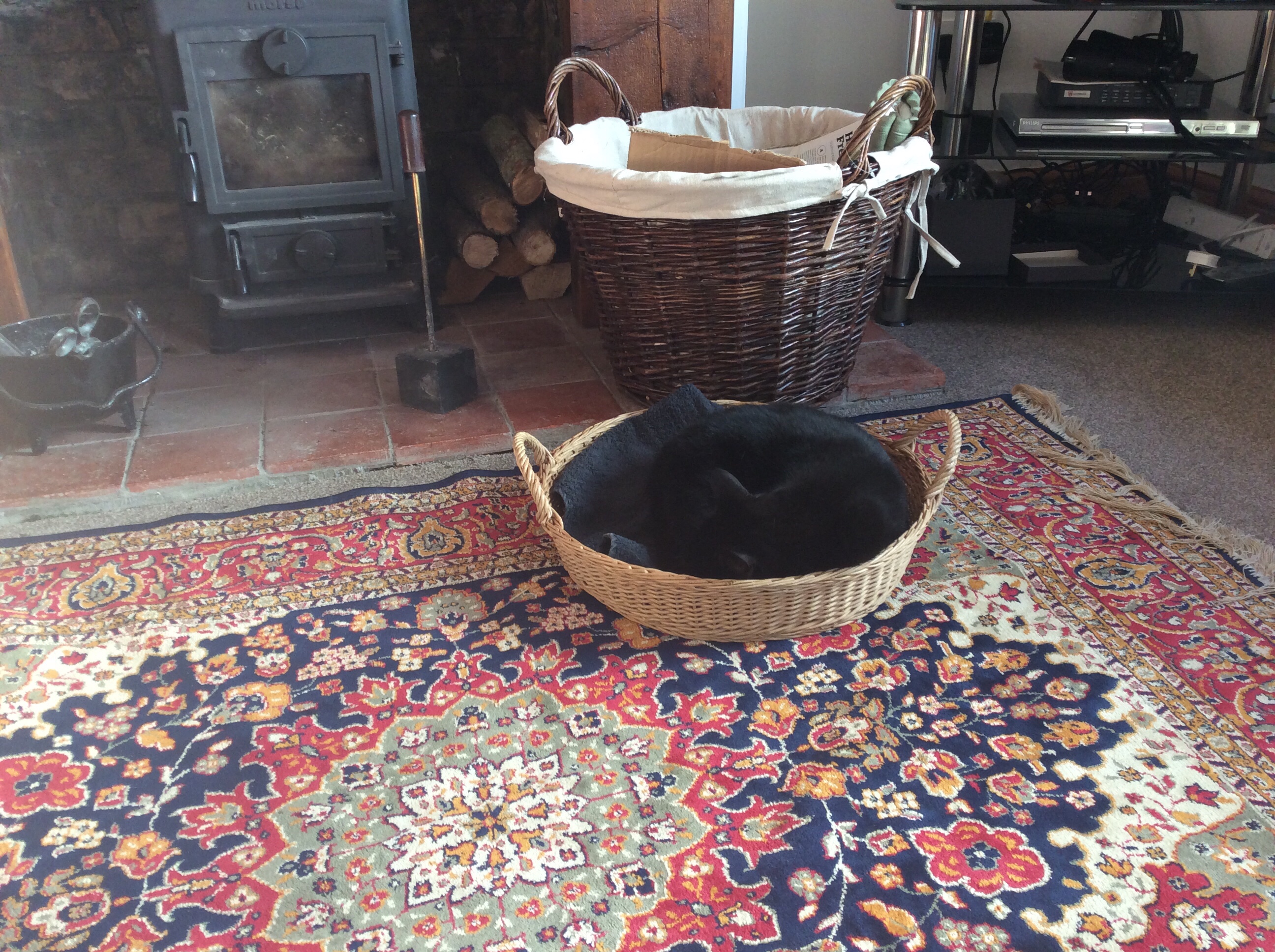 I was in St Neots this morning and stopped by the cats protection charity shop to pick up four kitten toys for Nigel. There was also a second hand cat basket which I grabbed for Mabel. Mabs has taken over my armchair since Mack and Josie left and she has been allowed into the house. I have to sit on the floor! That stops today.
