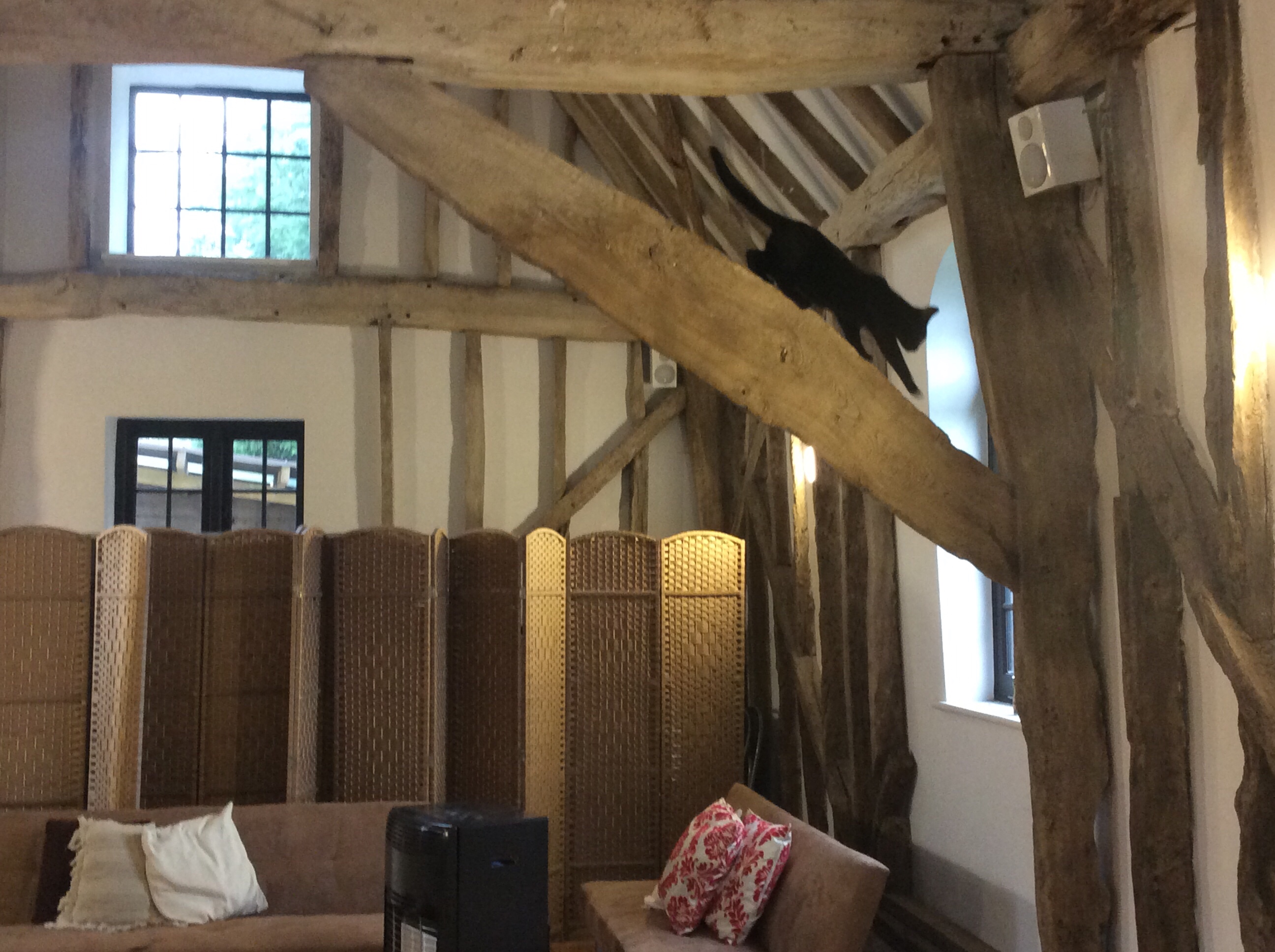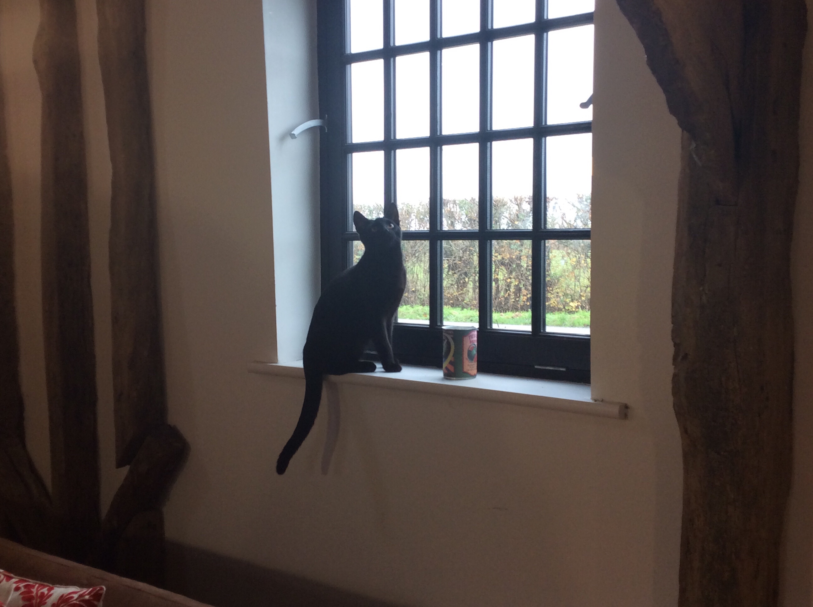 I feel sorry for Nigel confined to the kitchen and, during the night, to his cage. Cats Protection and the vets advise that he be kept indoors for two or three weeks to get his bearings but it’s hard to watch him sitting at the window longing to get outside. Daughter had a good idea, “take him and a ball to the barn to play”. So that’s where we are and Nigel is so busy exploring his surroundings that he has no interest in chasing a plastic ball!