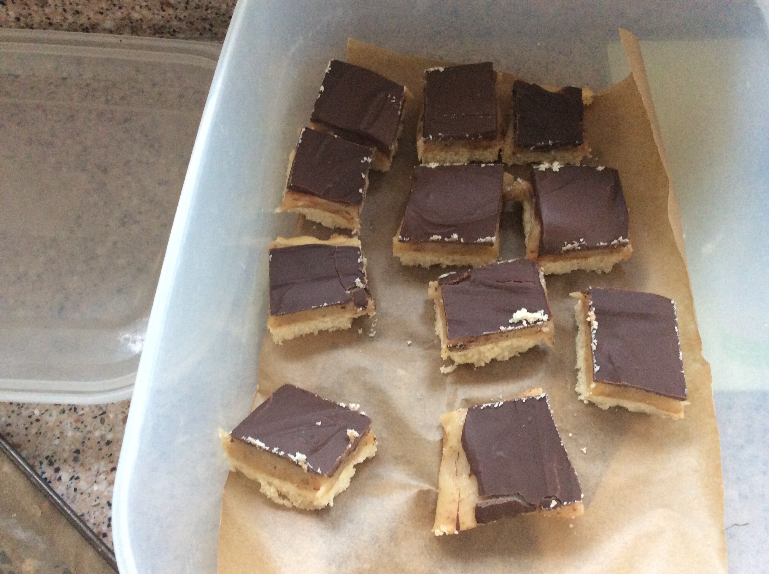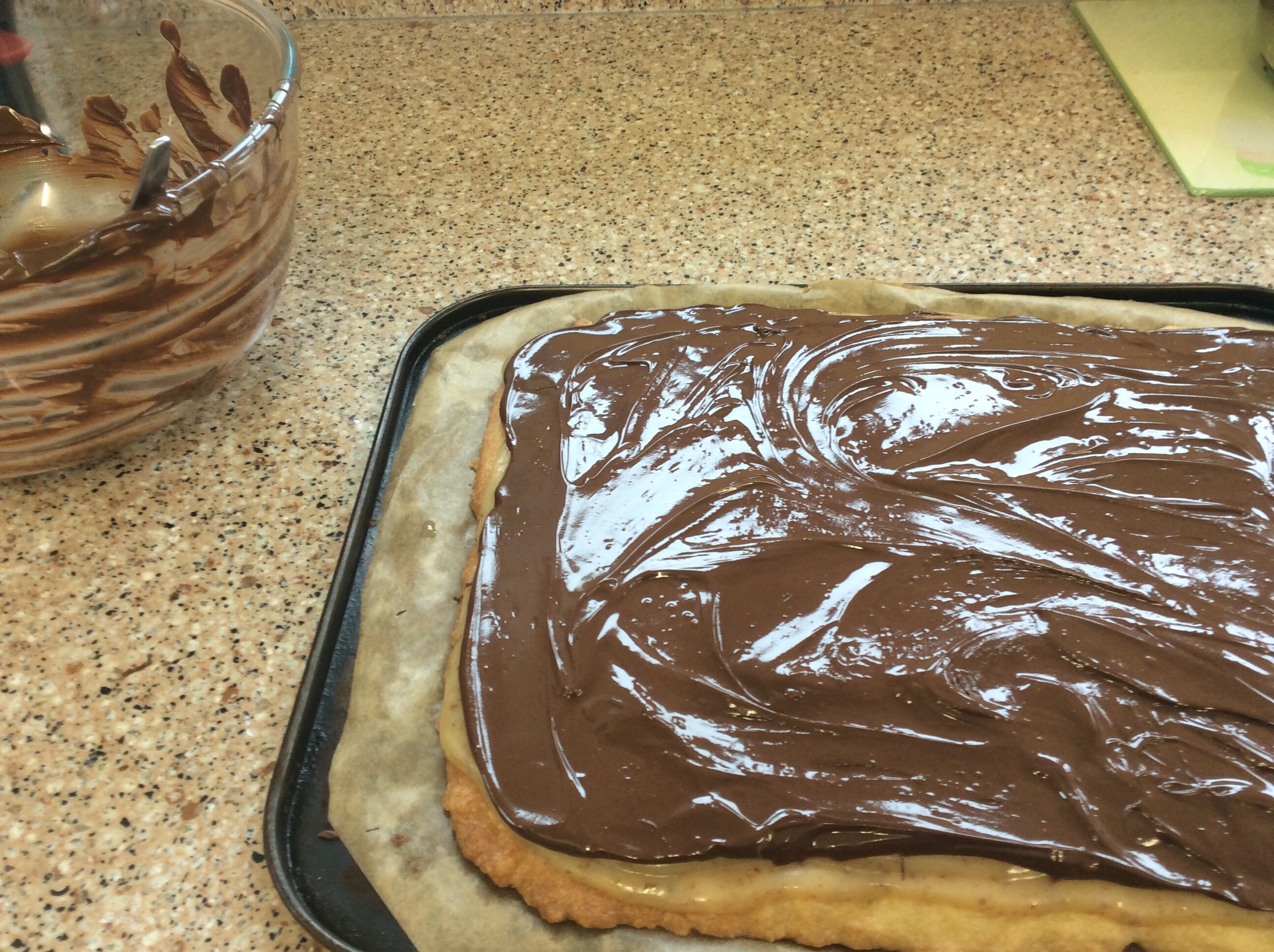 The other night we saw a few minutes of a programme featuring the baker, Paul Hollywood and he was baking shortbread biscuits with his Mum. Jeremy said he wanted to have a go at “millionaires shortbread” which our son in law often makes for us as a treat. Today, with the snow still on the ground, I decided to have a go first! The results are dangerously delicious and heavily calorific.