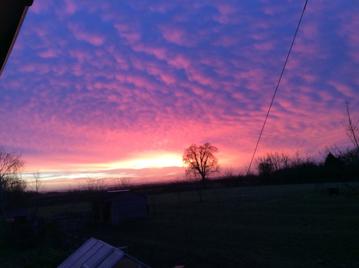 January 2, 2018 by gfreedman2013 Red sky in the morning……shepherds warning Share this: Share on X (Opens in new window) X Share on Facebook (Opens in new window) Facebook Like Loading... Related