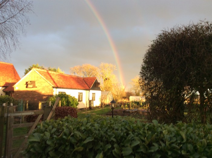 One thought on “Rain then a brief burst of sun and a magical rainbow