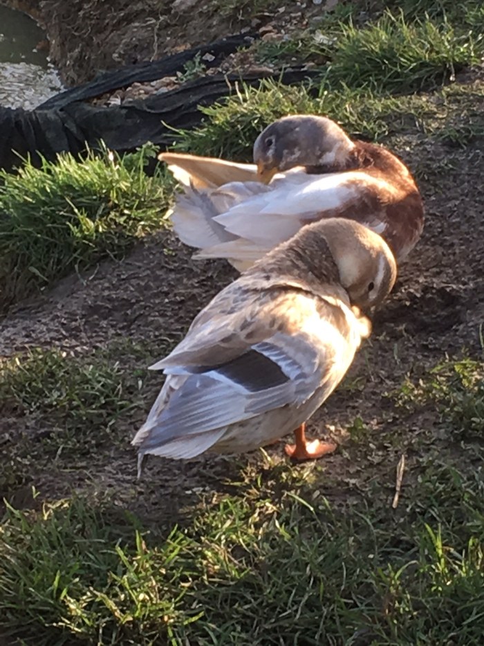 The ducks were preening themselves and looking splendid in the sunshine.