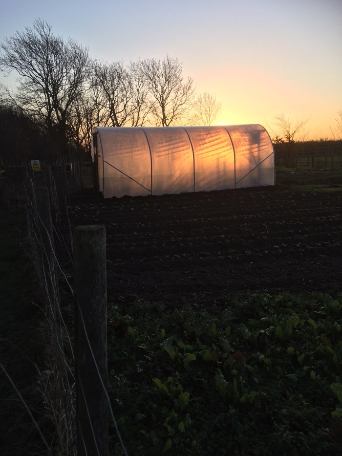 And inside the tunnel pea netting has been put up around the edge and a trench has been dug ready for the arrival of the new strawberry plants.