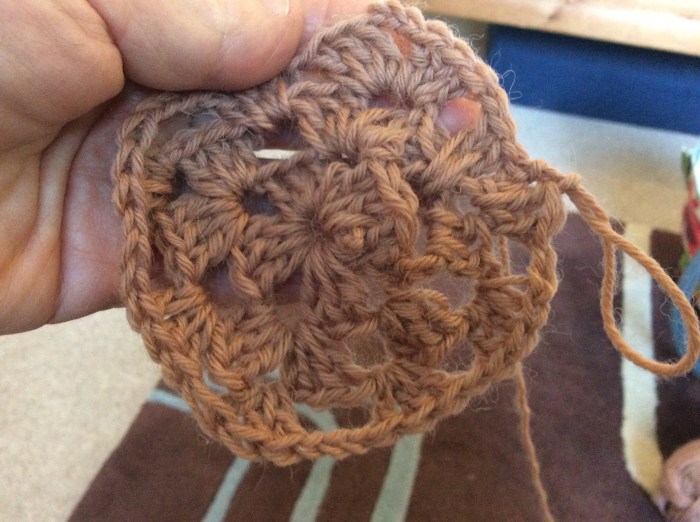 1. Well done! I haven’t done squares for ages but I think you just have to make sure that at every corner you do your 2 double crochets or whatever they are, chain then another 2 in the same hole, before you go down the sides and just do 2 in each hole….