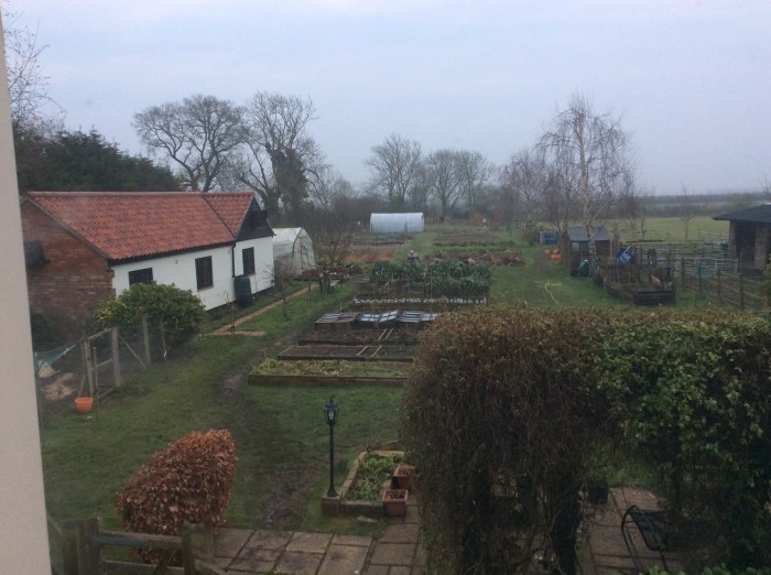 The usually dry paths around the garden are slippery mudslides which are treacherous for me to negotiate on crutches. I haven’t ventured down to the chicken run for over two weeks. Missing them (but still enjoying their daily eggs). I have reports that Mrs Silkie has gone broody and she is sitting on one of her eggs and six Maran eggs that Jeremy gave her to incubate. Bless her.