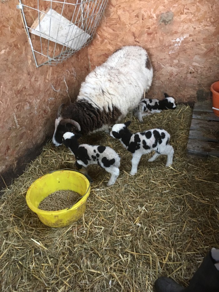 February 28, 2018 by gfreedman2013 The triplets are out of the wind and snow in part of the cow barn. Mother is trying to feed them all but, if we have to, we will give them some “top up” bottles. Nigel is very interested. Share this: Share on X (Opens in new window) X Share on Facebook (Opens in new window) Facebook Like Loading... Related