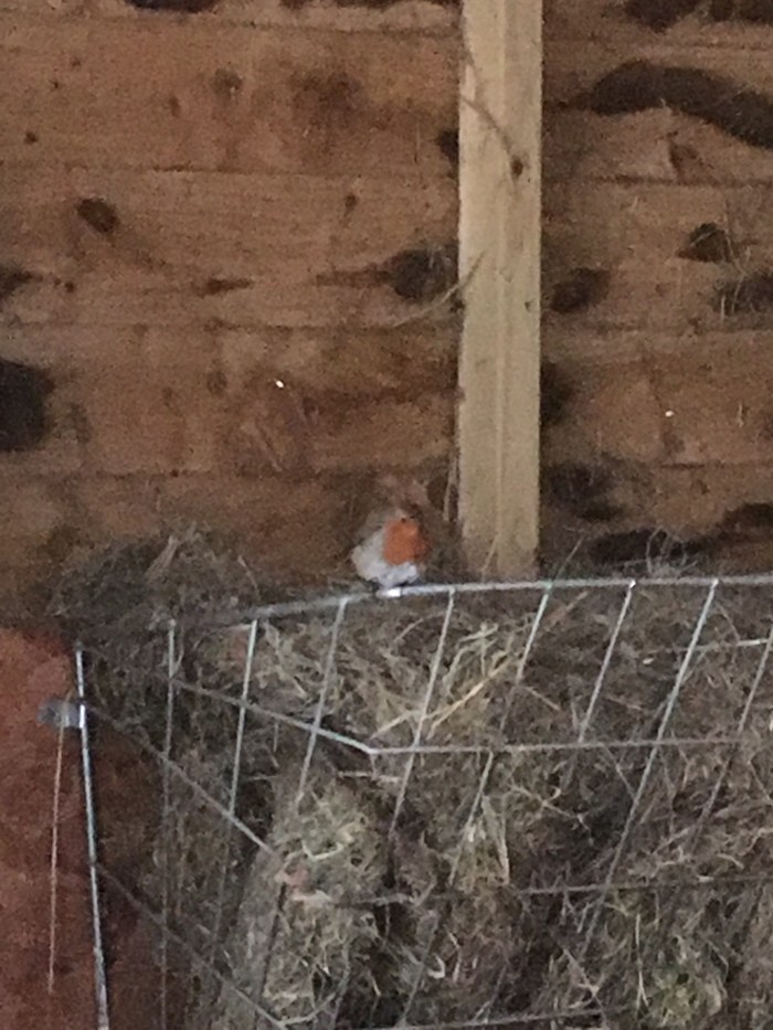 A cold robin flew in and out of the barn while I was watching Jeremy stack the bales. The birds are desperately cold and hungry and Jeremy keeps filling the bird feeders with sunflower seeds and peanuts.