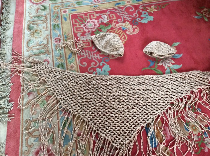 We returned to Aldi yesterday to see if there was any more of the bargain basement wool on sale as I had started to crochet a shawl (another YouTube simple tutorial). There was one pack left at the bottom of the bin. I continued the crochet during the afternoon and until beyond midnight and finished the fringes this morning and all I had left of the wool was….