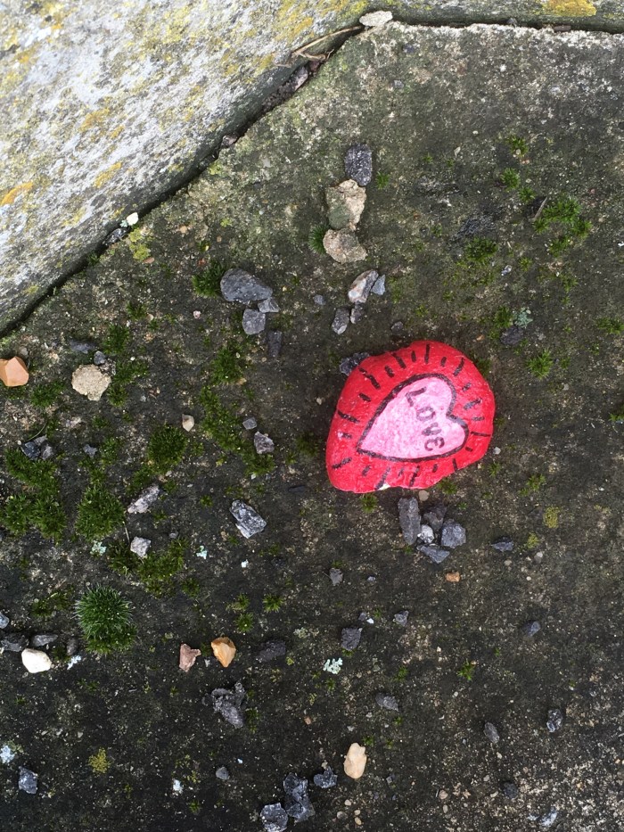 I had hoped to find one of these objects since the librarian told me about this recent craze for painting stones and leaving them anonymously, and randomly, around the town. What a delightful idea. Thank you whoever you are.