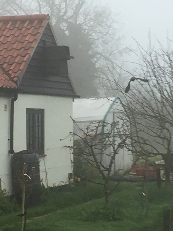 As I finished opening up the animal houses I heard a knocking noise which sounded ghostly in the early morning mist. I walked towards the sound. Could it be an intruder in one of the barn bedrooms? No. A pair of jackdaws have taken residence in one of the owl boxes and are making a nest inside.. noisily!