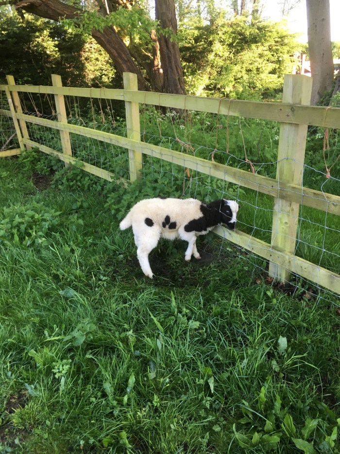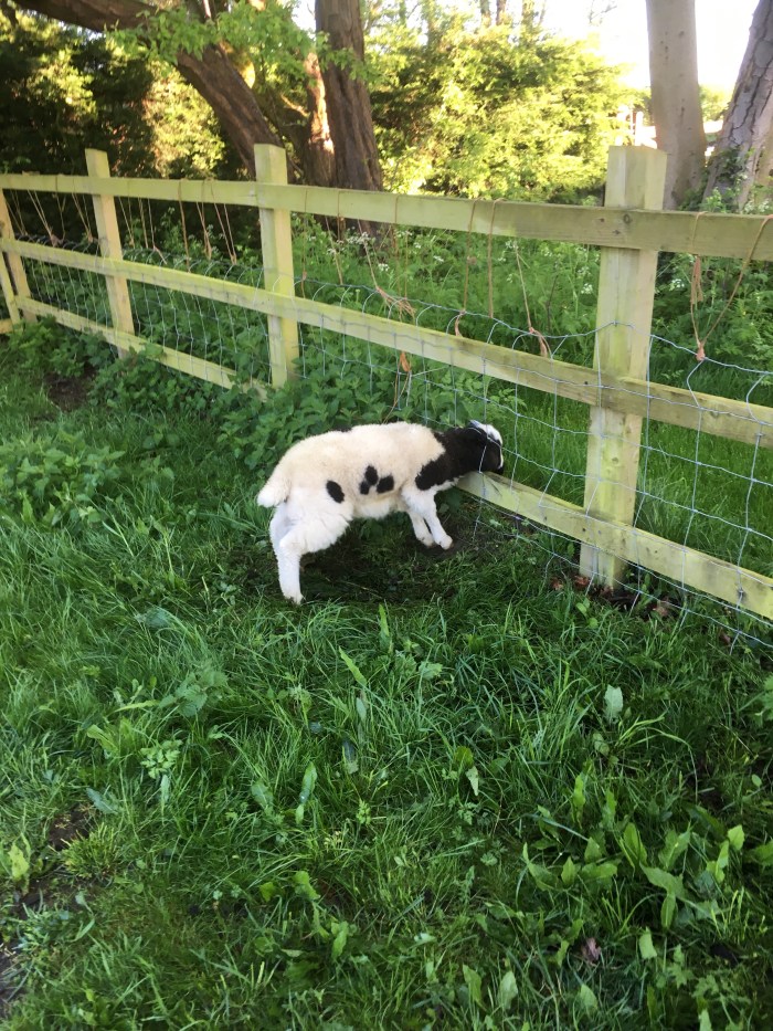 The lambs are growing and so are their horns. As always, the grass and leaves beyond the fence seem more tempting than the grass in the paddock. The greediest lambs stick their heads through the sheep netting and can’t work out how to get their heads back again! Luckily we check them regularly and disentangle them. So it was this morning. Silly lamb.