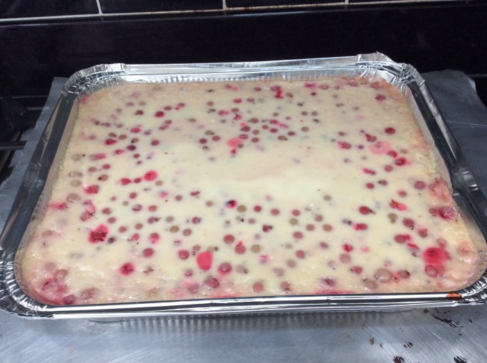 A sour cream cake with redcurrants that I defrosted from the freezer. The last of the currants until the new crop.