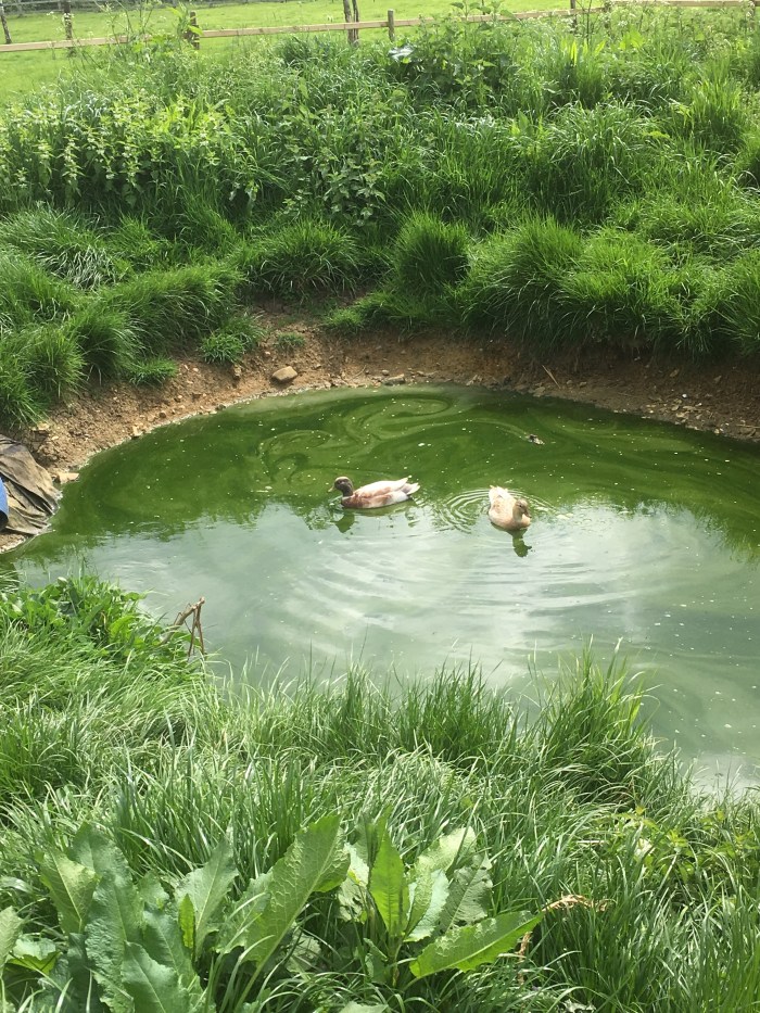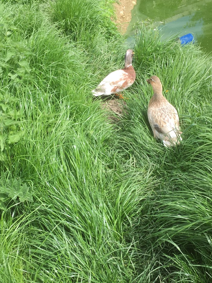 Mrs Duck has abandoned her nest to spend time with her mate. They are always together – swimming in the pond, wandering in the long grass or just sunbathing