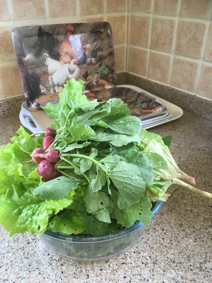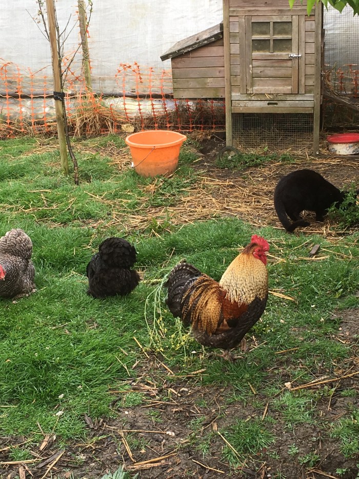 He just ate his cat food breakfast but was still hungry for corn and layers pellets!
