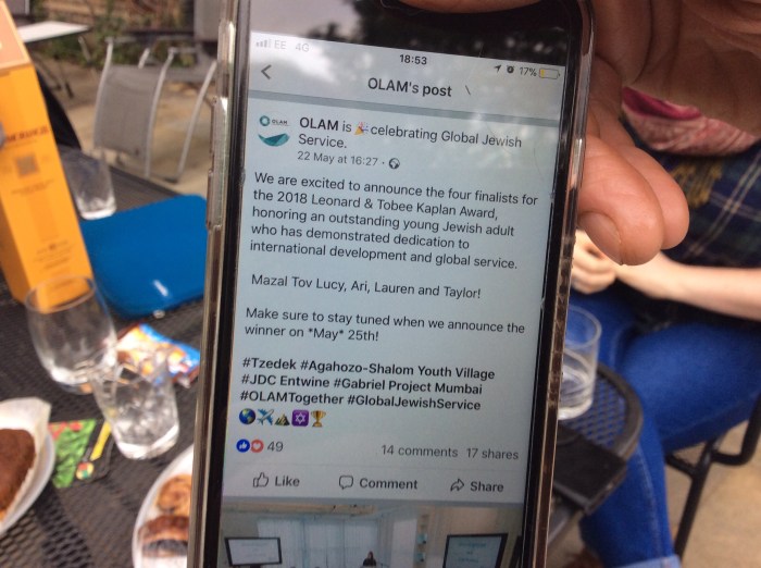 Our niece has flown to Washington, USA, to attend the 3rd annual Olam conference for Jews engaged in global service, international development and humanitarian aid. Last year Lucy was working in the slums of Mumbai helping mothers to set up self sustaining small businesses and teaching in schools established by the Gabriel project to provide daily meals and education for children who would otherwise be working on the streets. The year before she had supervised students on a project in Ghana working in a poor village and living with the people and sharing their lives whilst trying to help in a practical way through education. Lucy was nominated for the Leonard and Tobee Kaplan prize for her work in India and last week she was notified that she had won this award. It will be presented in Washington at the Olam conference. We hope that she will continue to try to “mend the world” and help the disadvantaged until one day there is no longer poverty and deprivation in our fractured world.