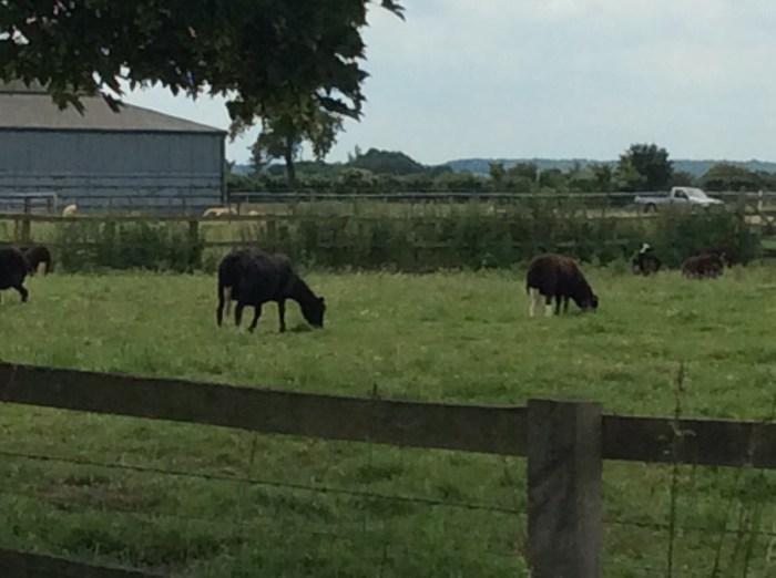 I could tell from the woman’s face that I did not own a priceless piece. Her opinion was that the green stone was a semi precious beryl set in 9 carat gold. At auction it might fetch £70 to £100. I then showed her the jade earrings. She pronounced them circa 1930’s when the fashion for jade gave rise to glass earrings coloured green. Although set in silver the diamond looking decoration is only paste. I was relieved, believing that my grandmother would have been set an evil eye upon me had she known that I was thinking of selling her precious jewels. Now I can wear the earrings (although probably not the ring but who knows, on a special occasion?) without worrying that I might lose of damage them. I drove back along Cople Road and stopped, abruptly, at a field full of what looked like goats.