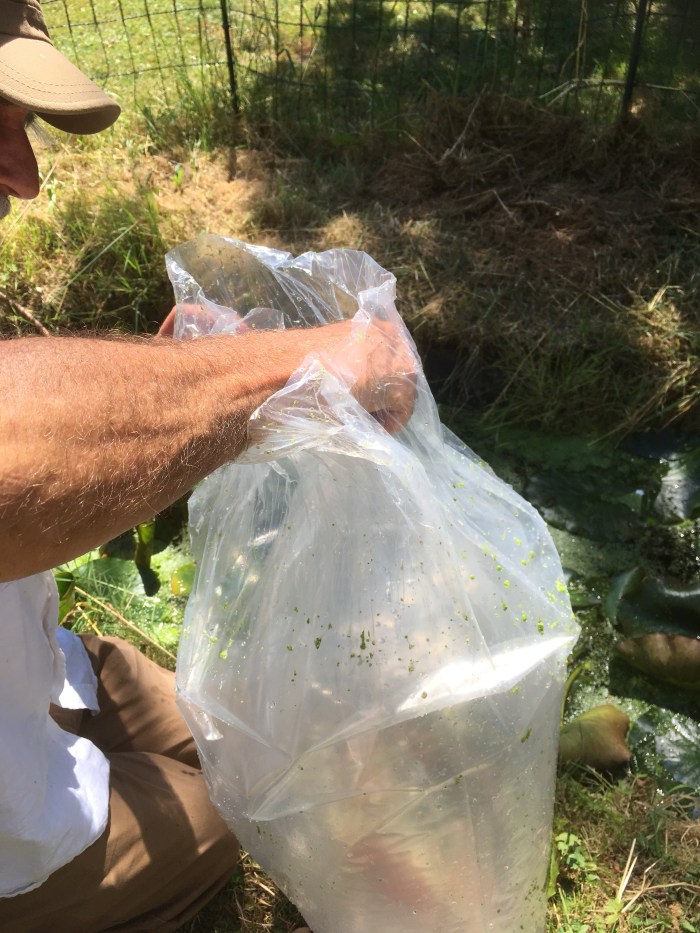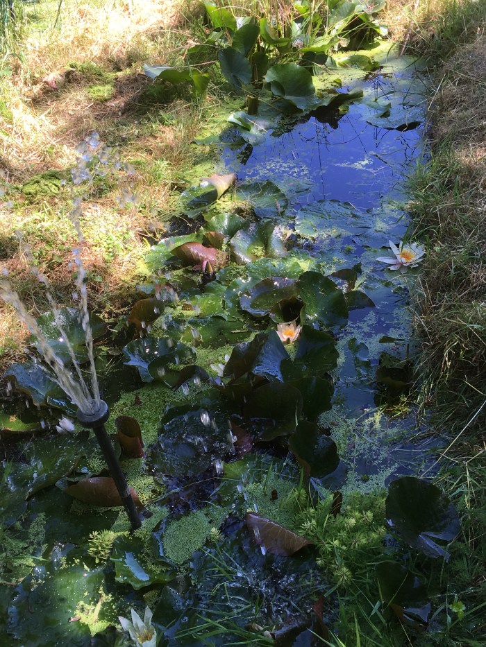 Inside was a small shoal of tiny goldfish. Jeremy has just released them into the pond near the house.