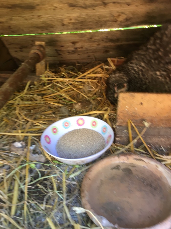 And in the chicken ark sits a Bantam hen who has, over the past ten weeks, been sitting (unsuccessfully) on duck eggs, then chicken eggs and another clutch of chick eggs. This morning, finally, she has one black fluffy chick and may have more to follow. That one chick is very precious.