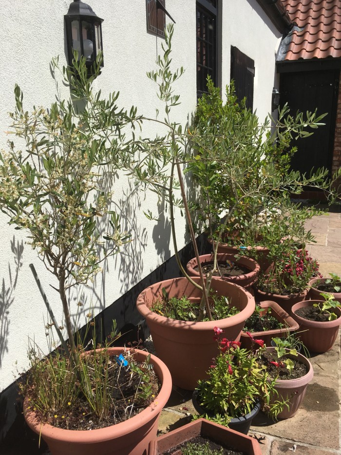 And olives (another of the seven species). They are in the sheltered courtyard next to a south facing wall.