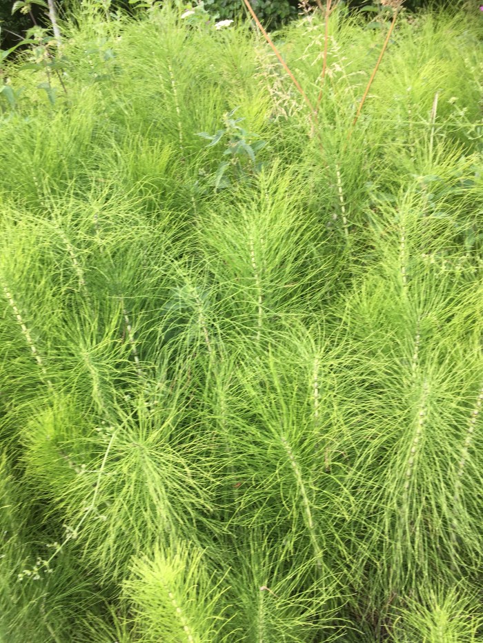 Faye is correct – Mare’s Tail is not a fern (I dunno the actual genus etc, plants not my thing) but I do know that it’s a fairly primitive (ie ancient) lineage, probably arising pre-Carboniferous
