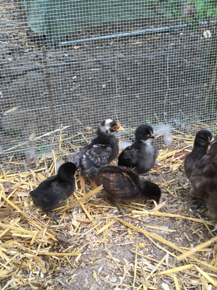 Unlike the geese, who have grown at a prodigious rate, the baby chicks still look tiny in spite of feeding well.