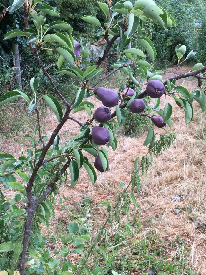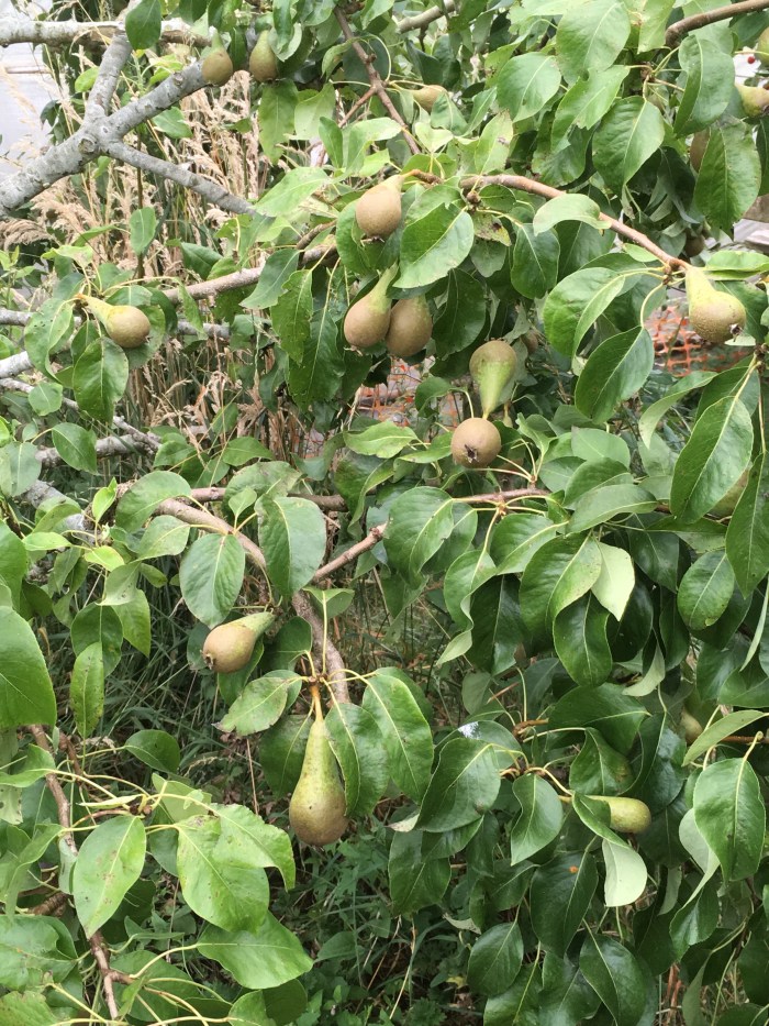 In the orchard there are two pear trees that we planted four years ago. They are beginning to produce fruit.