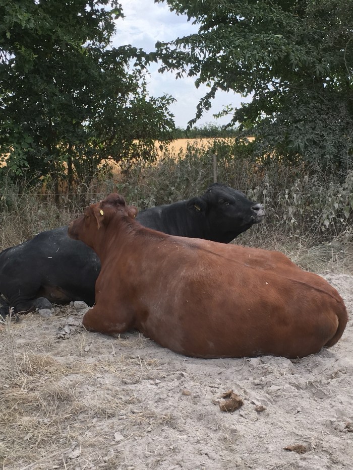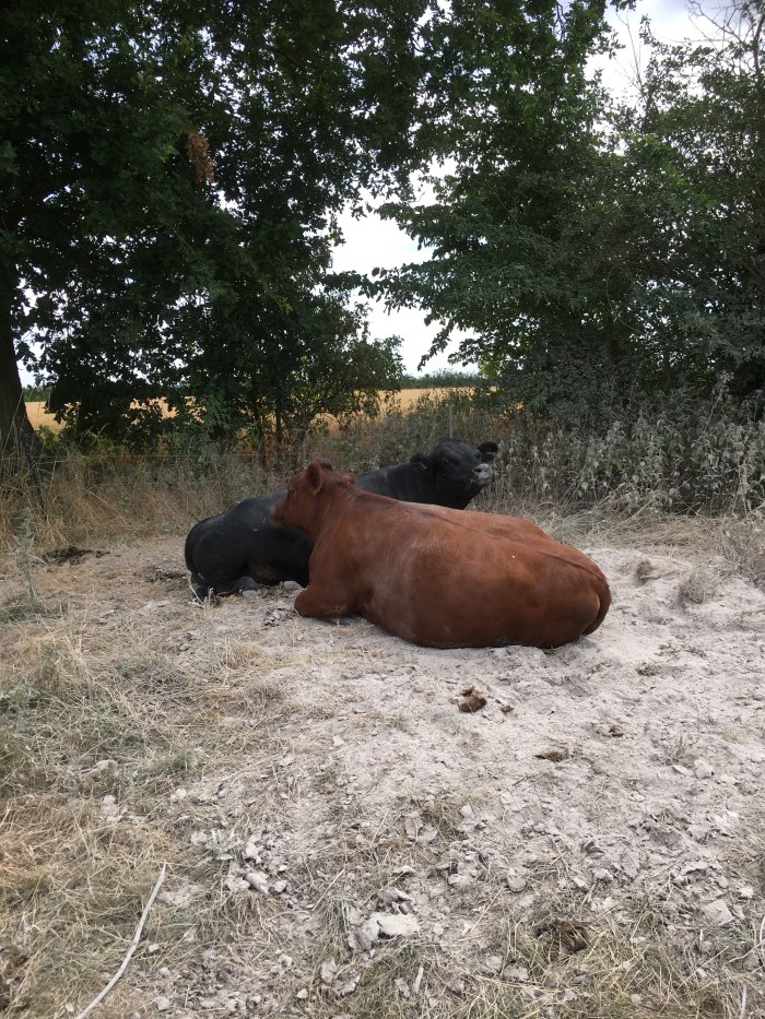 Lucy and Beattie take a dust bath in the ashes of an old bonfire site