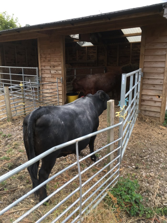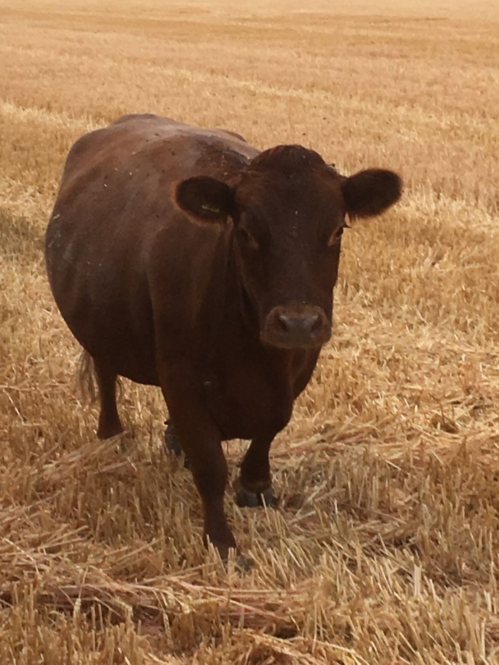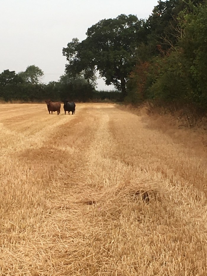 Jeremy opened the landing window and a voice asked if we had a couple of cows? If so they were in the adjacent field where the farmer has just finished combining.