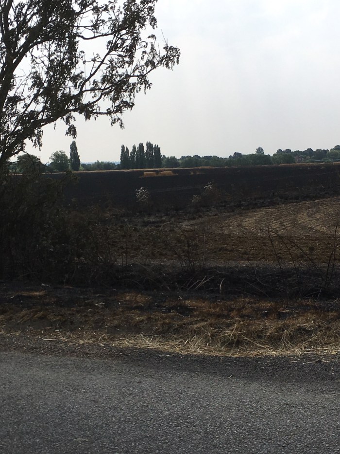 Drive along Mill Road from The Gables towards The Black Cat and just before the turn off to Wyboston Village there is an acrid smell of smoke. On the bend a fire broke out, on Tuesday, in the field on the right and jumped across from one side of the roadway to the other.